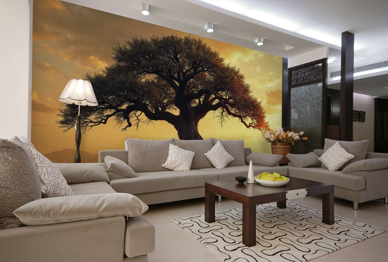 Tapeta Fototapeta Baobab o zachodzie słońca na pustyni (artykuł u14249 ) z kategorii Fototapety Natura