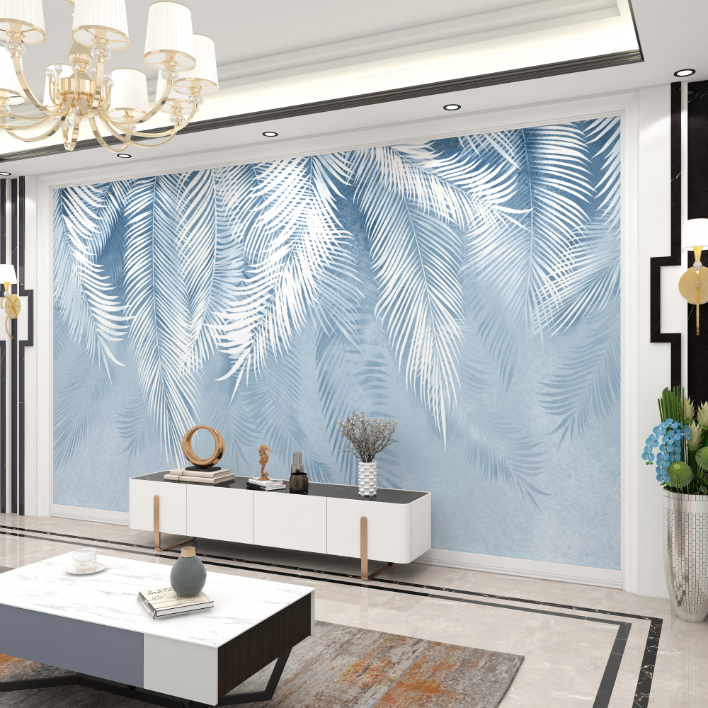 Tapeta Fototapeta białe i niebieskie pierzaste liście zimą (artykuł a90897 ) z kategorii Fototapety Natura