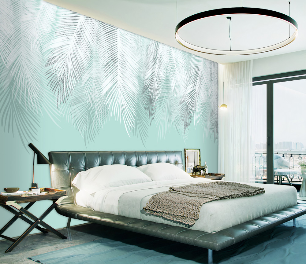 Tapeta Fototapeta białe liście palmowe na turkusowym tle (artykuł a92277 ) z kategorii Fototapety Natura