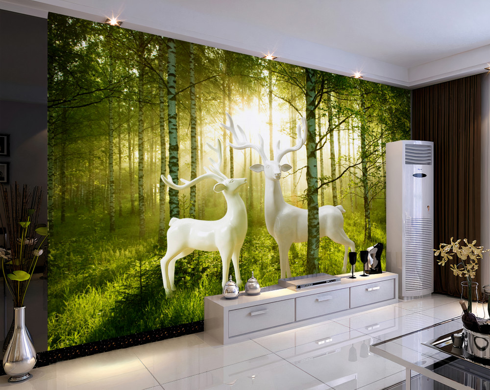 Tapeta Fototapeta biały jeleń w zielonym lesie (artykuł a90372 ) z kategorii Fototapety Natura