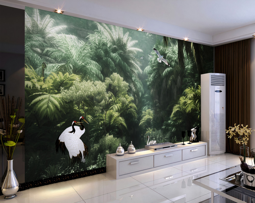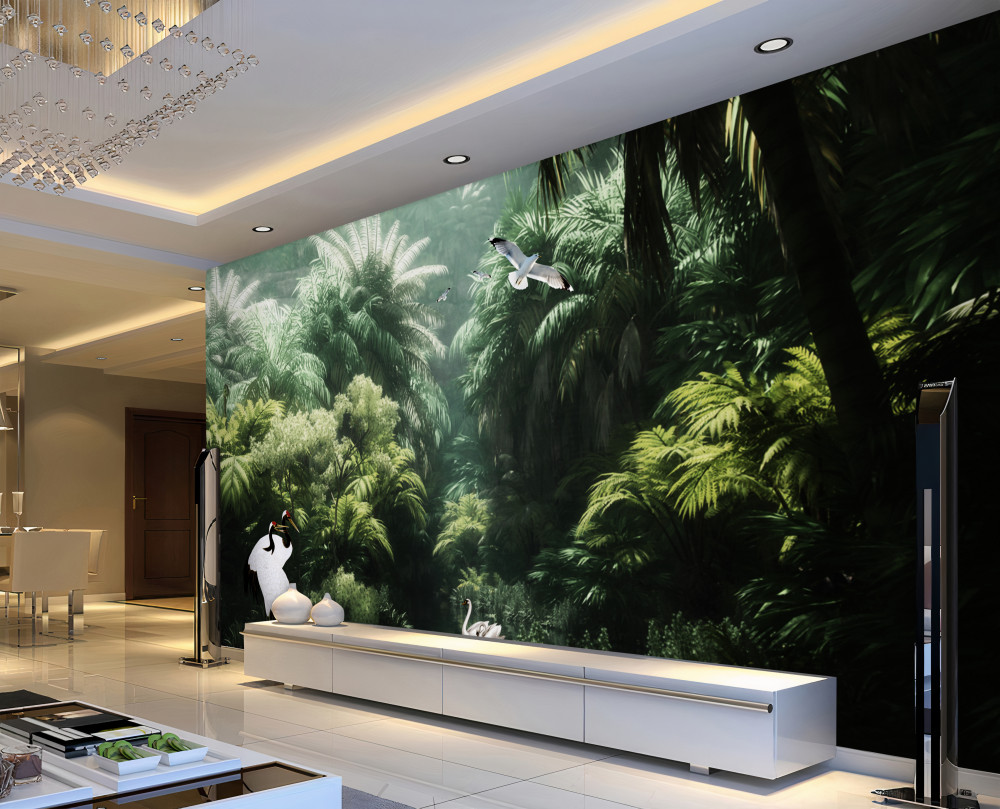 Tapeta Fototapeta bogata roślinność dżungli i ptaki (artykuł a91253 ) z kategorii Fototapety Natura