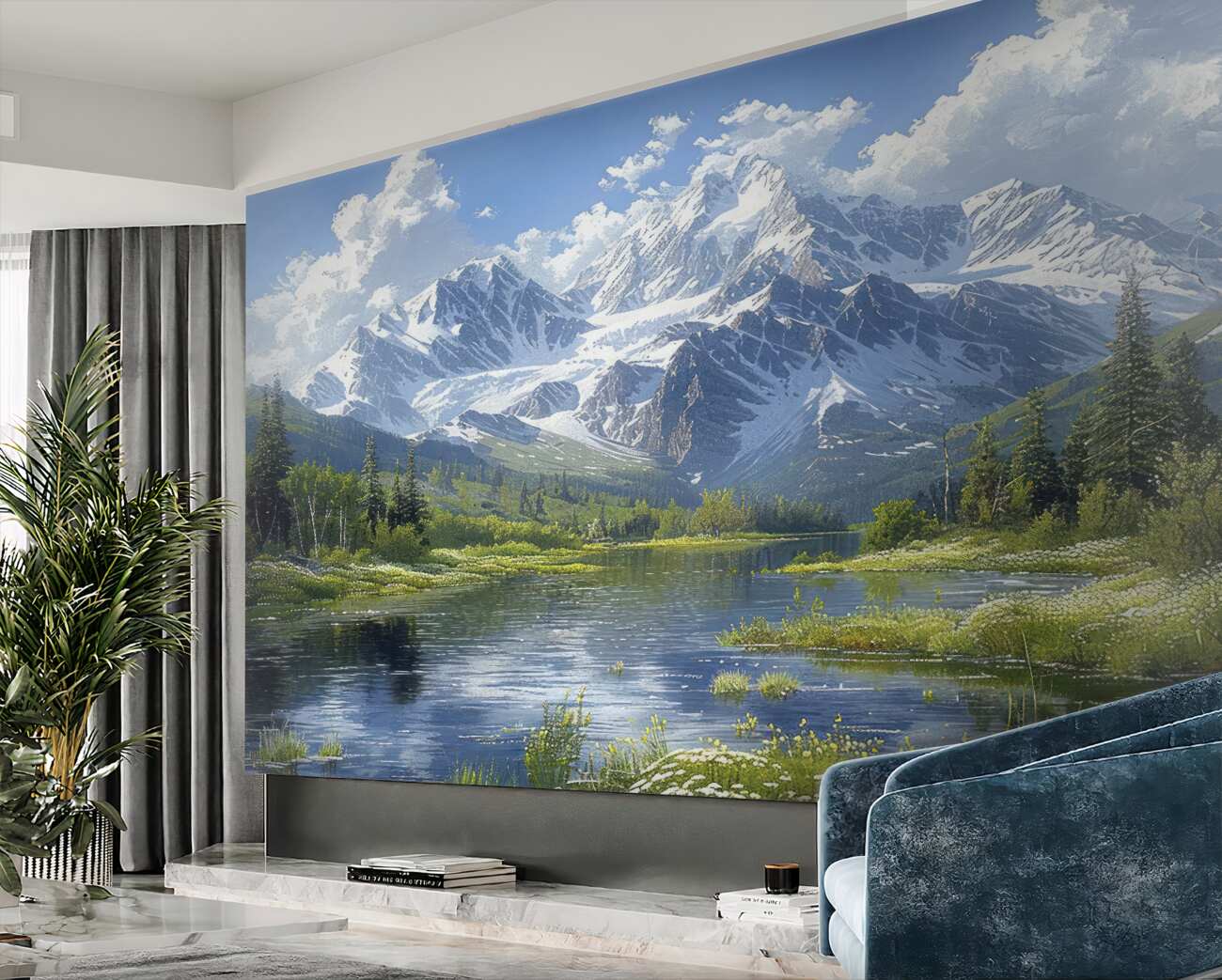 Tapeta Fototapeta Cicha woda w pobliżu gór (artykuł u14158 ) z kategorii Fototapety Natura