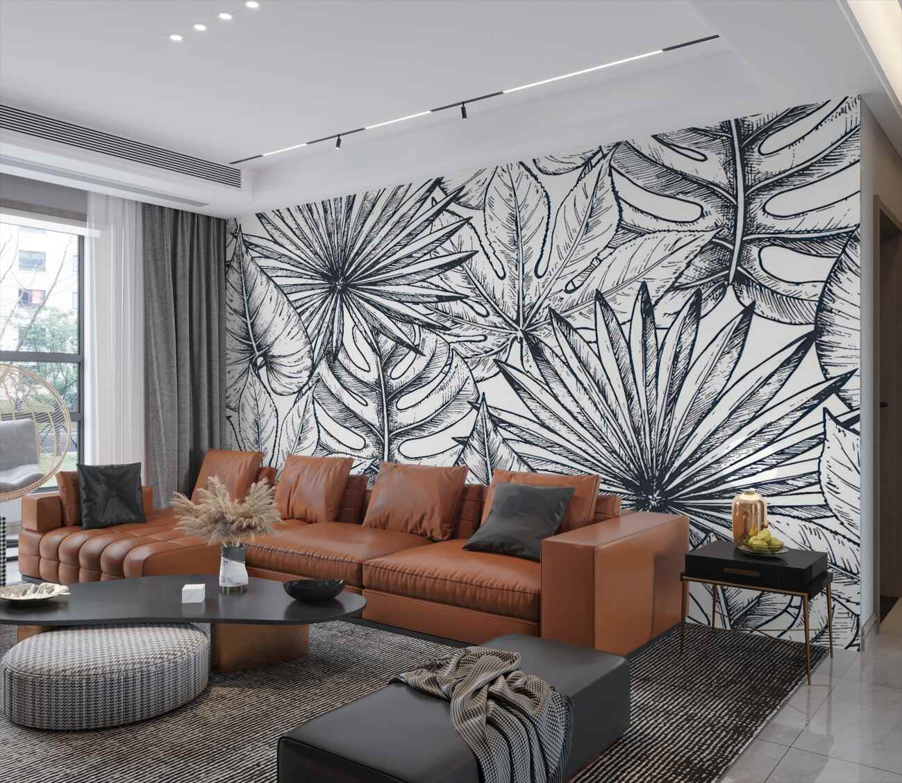 Tapeta Fototapeta Czarne -białe liście tropiki (artykuł a99353 ) z kategorii Fototapety Natura