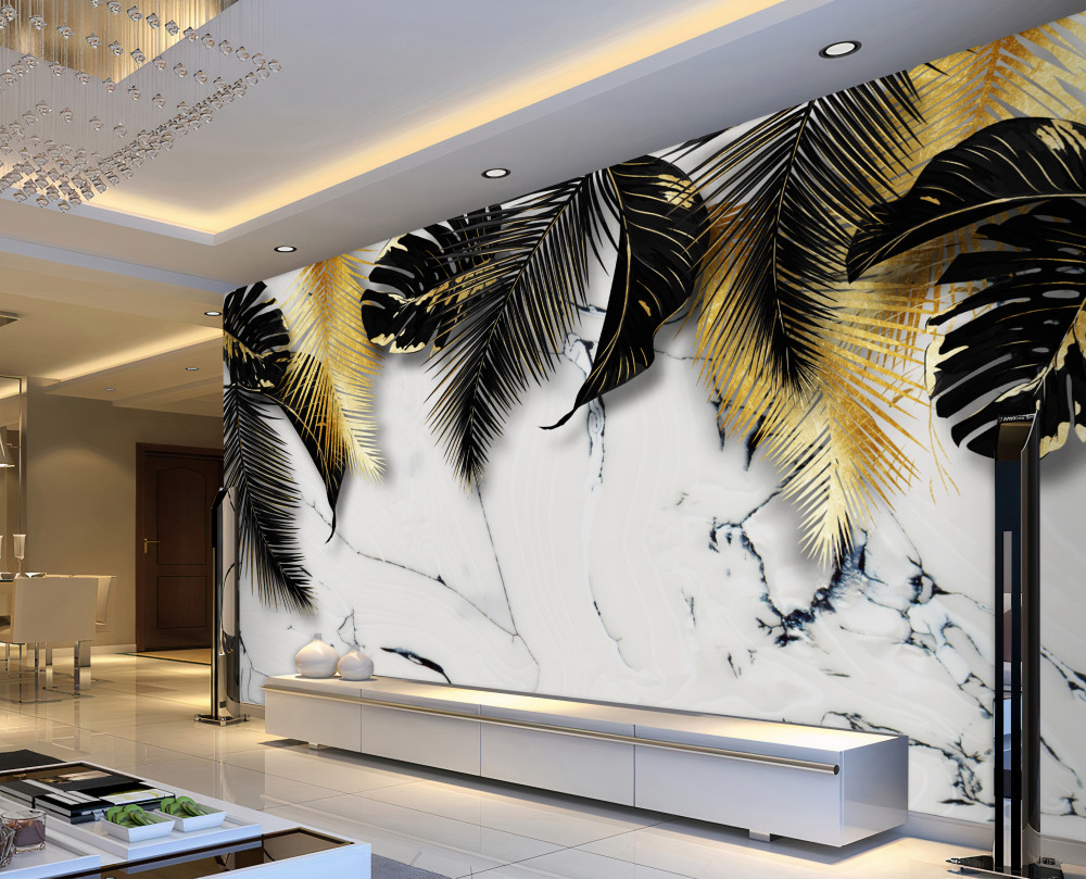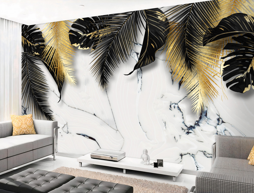Tapeta Fototapeta czarne liście i brąz na marmurze (artykuł a92543 ) z kategorii Fototapety Natura