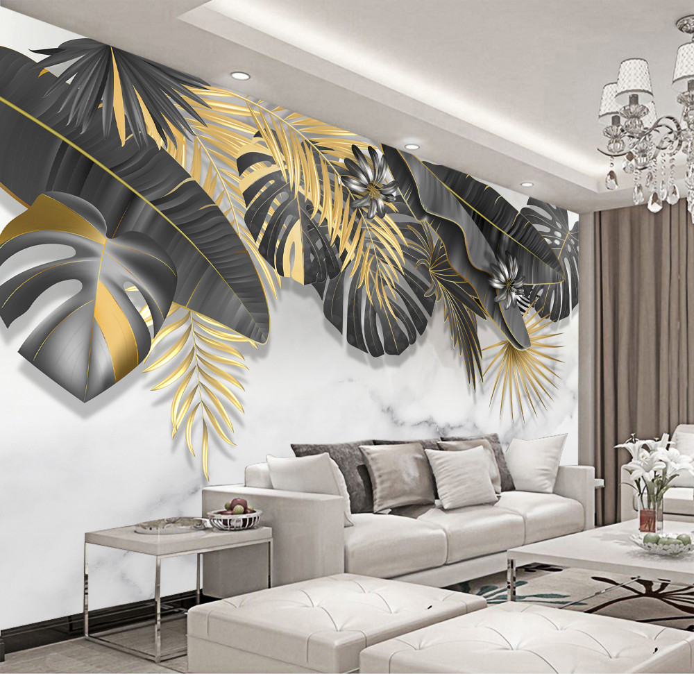 Tapeta Fototapeta czarno-złote liście tropikalnej dżungli (artykuł a94394 ) z kategorii Fototapety Natura