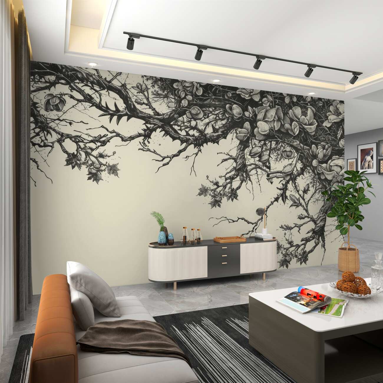 Tapeta Fototapeta Czarny biały obraz gałęzi drewna (artykuł u14382 ) z kategorii Fototapety Natura