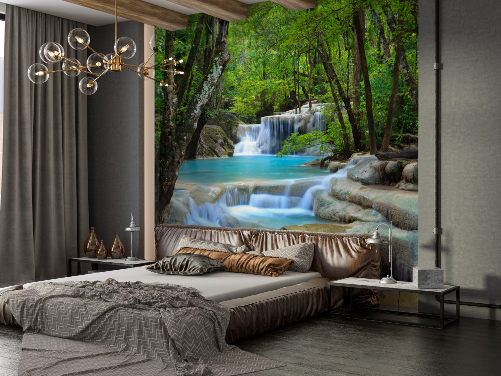 Tapeta Fototapeta czyste, błękitne wody leśnego wodospadu (artykuł a93999 ) z kategorii Fototapety Natura