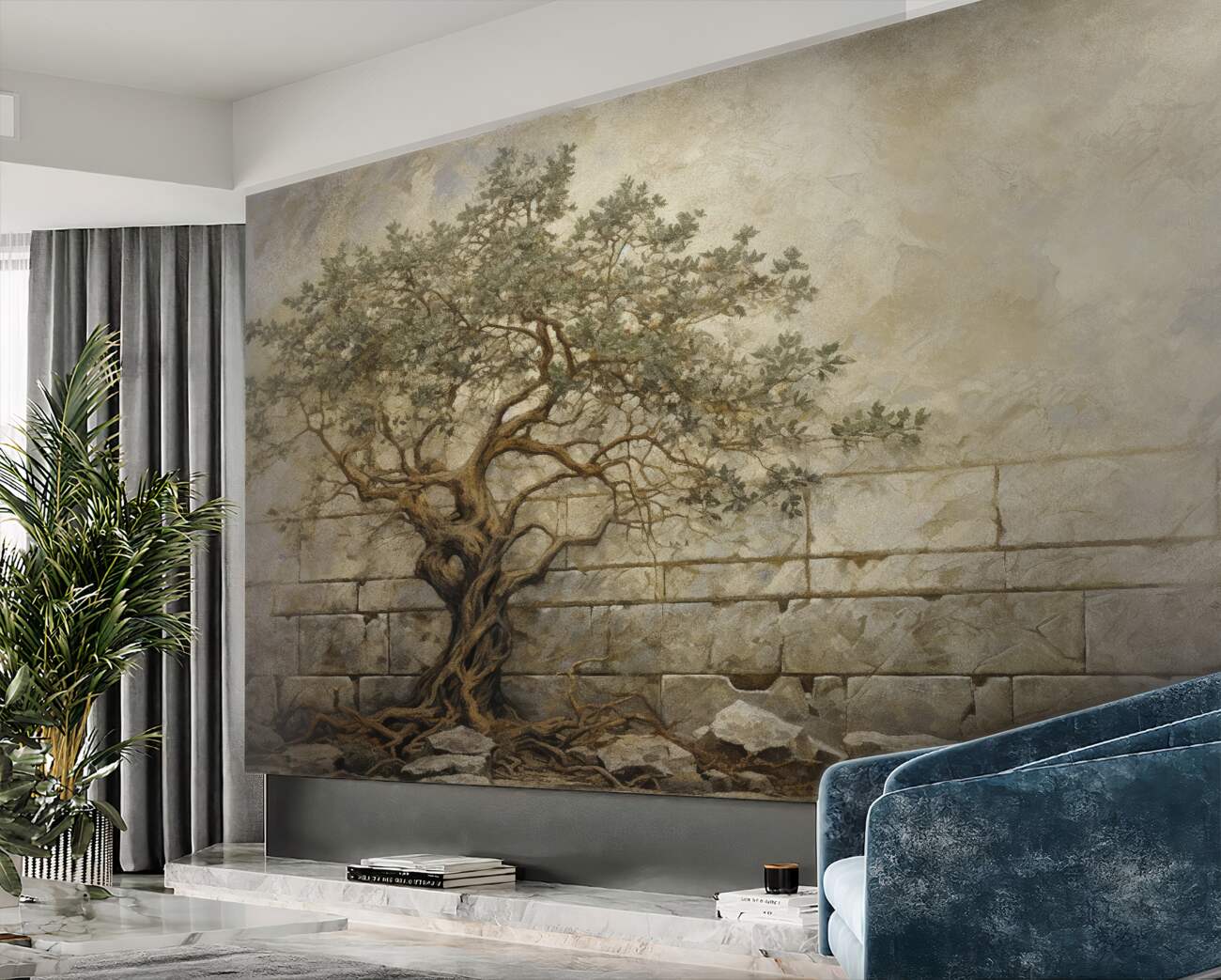Fototapeta Drzewo rośnie w pobliżu ściany