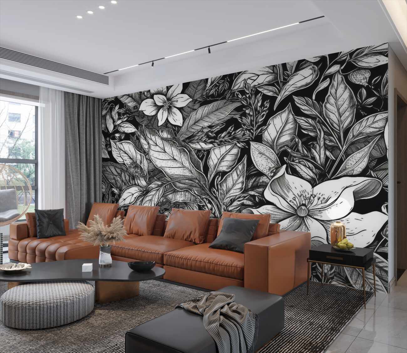 Fototapeta Duże czarne -białe liście