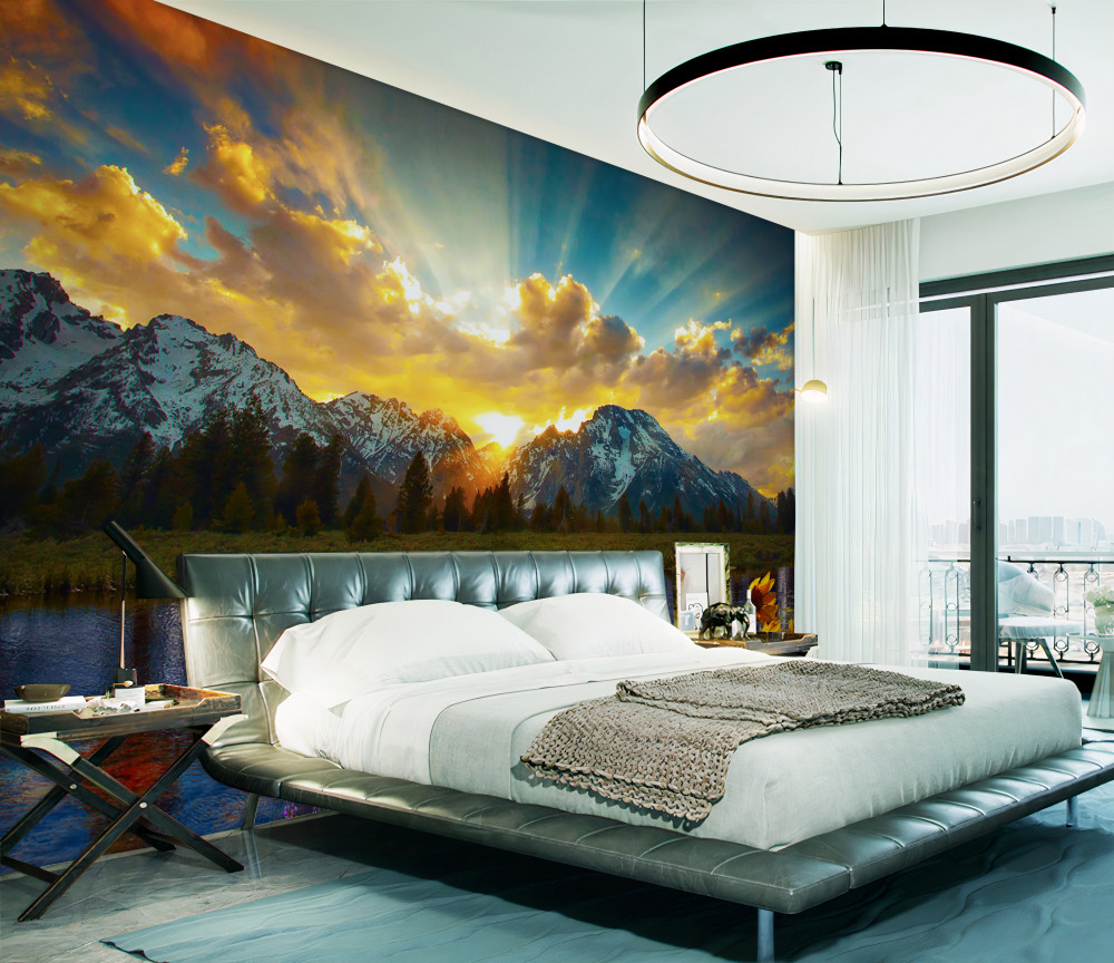 Tapeta Fototapeta fantastyczny zachód słońca nad górską rzeką (artykuł a90903 ) z kategorii Fototapety Natura