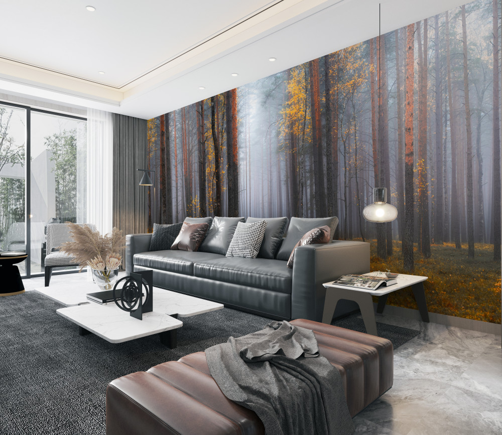 Tapeta Fototapeta gęsta mgła nadchodzi do lasu (artykuł a93213 ) z kategorii Fototapety Natura
