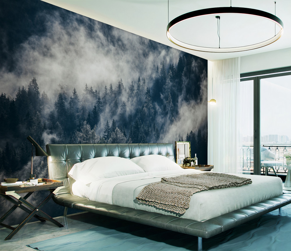 Tapeta Fototapeta gęsta mgła pokrywa las nocą (artykuł a88337 ) z kategorii Fototapety Natura