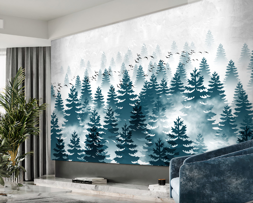 Tapeta Fototapeta gęsta mgła wdarła się do lasu iglastego (artykuł pb2271 ) z kategorii Fototapety Natura