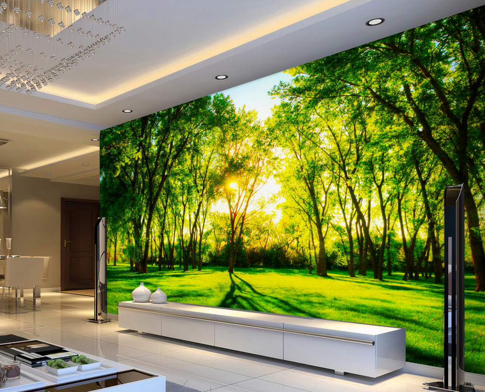 Tapeta Fototapeta jasne kolory zieleni w porannym lesie (artykuł a90150 ) z kategorii Fototapety Natura