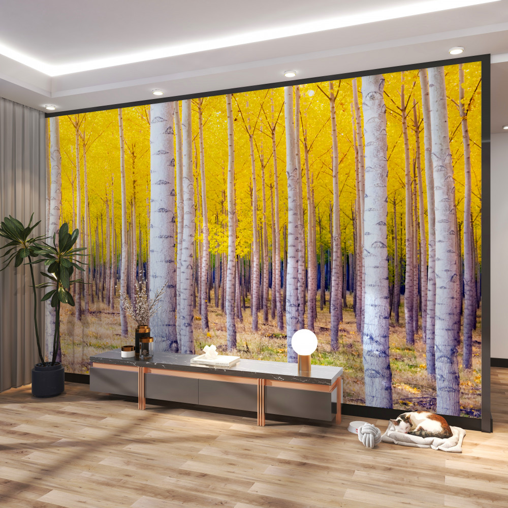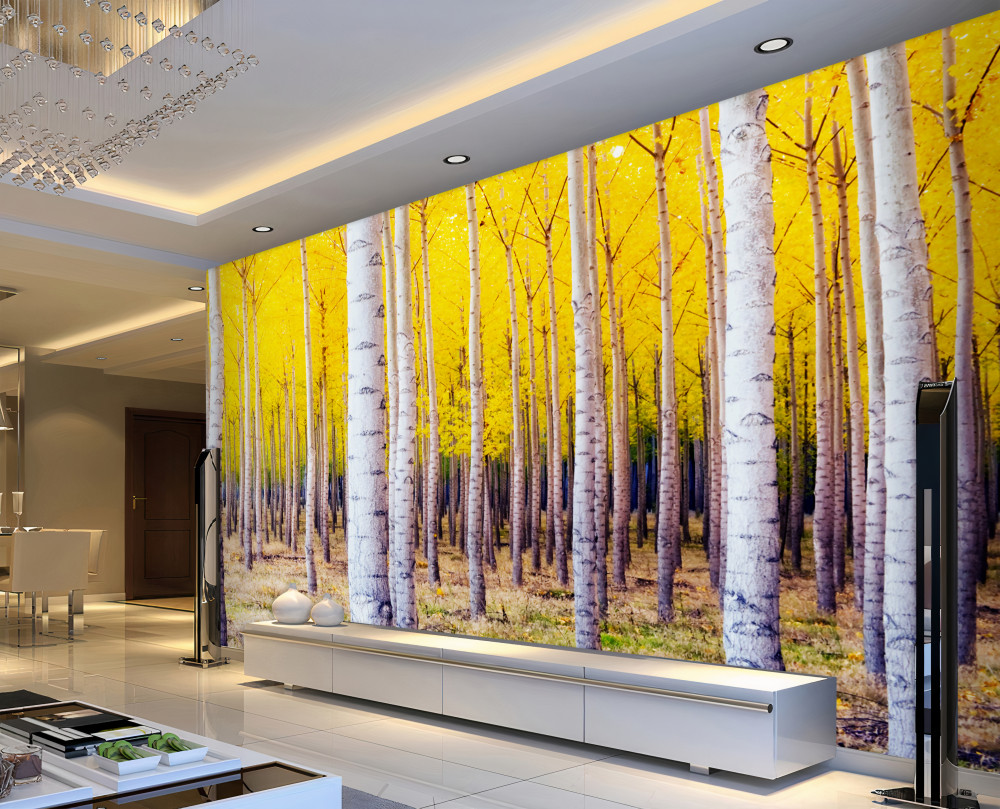 Tapeta Fototapeta jasne żółte kolory w gaju brzozowym (artykuł a91970 ) z kategorii Fototapety Natura