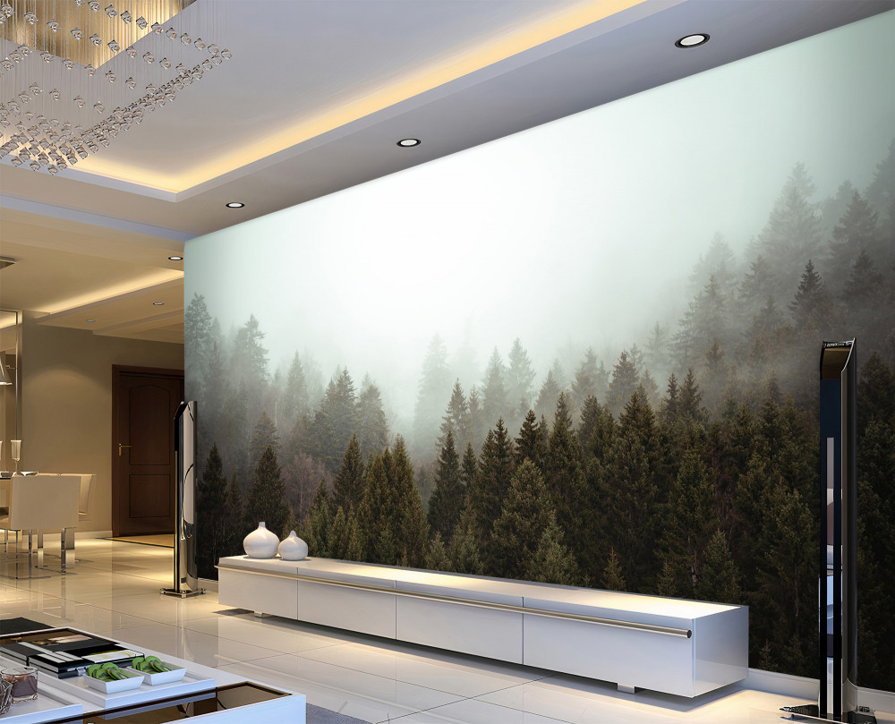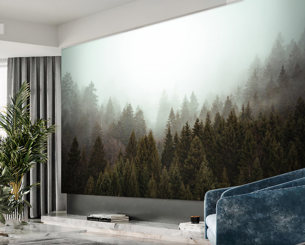 Tapeta Fototapeta jasny świt we mgle lasu iglastego (artykuł a88399 ) z kategorii Fototapety Natura