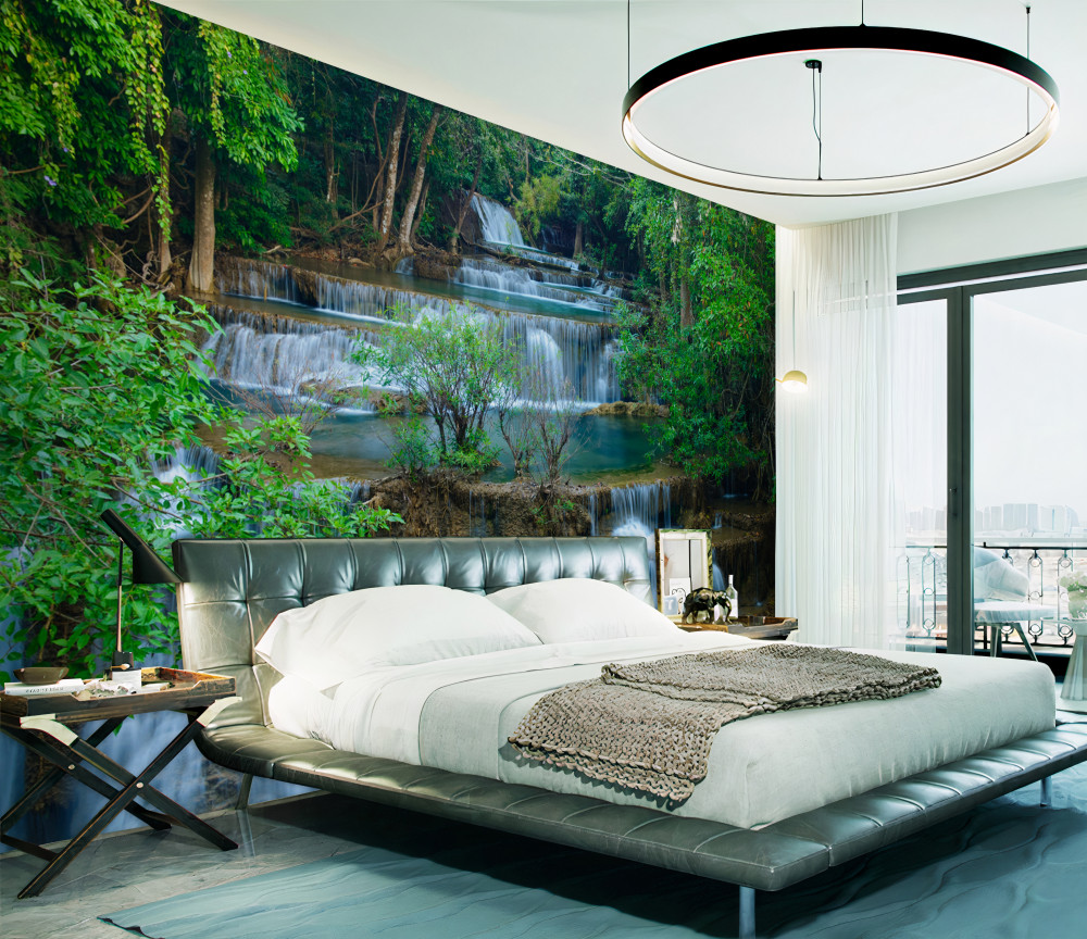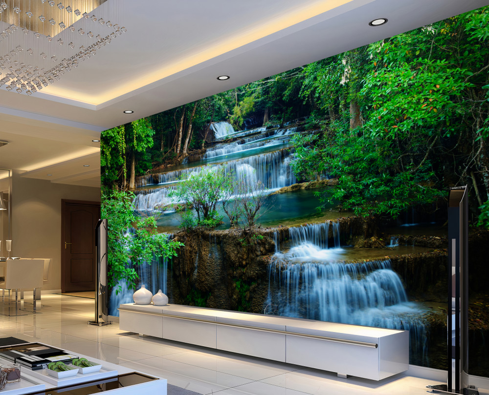 Tapeta Fototapeta kaskada wodospadów wpadających do lasu (artykuł a92911 ) z kategorii Fototapety Natura