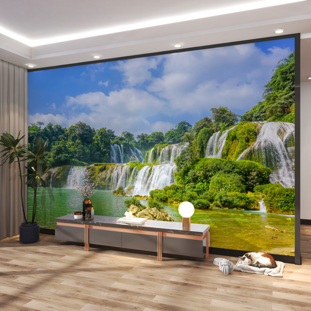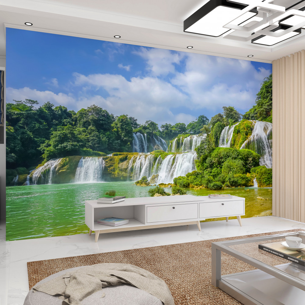 Tapeta Fototapeta kaskady wodospadów wpadające do jeziora (artykuł a92496 ) z kategorii Fototapety Natura
