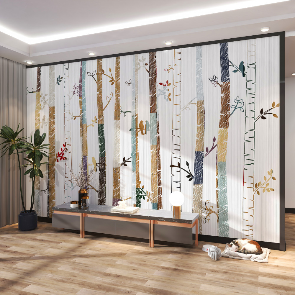 Tapeta Fototapeta kolorowa ilustracja smukłych brzoz (artykuł a91780 ) z kategorii Fototapety Natura