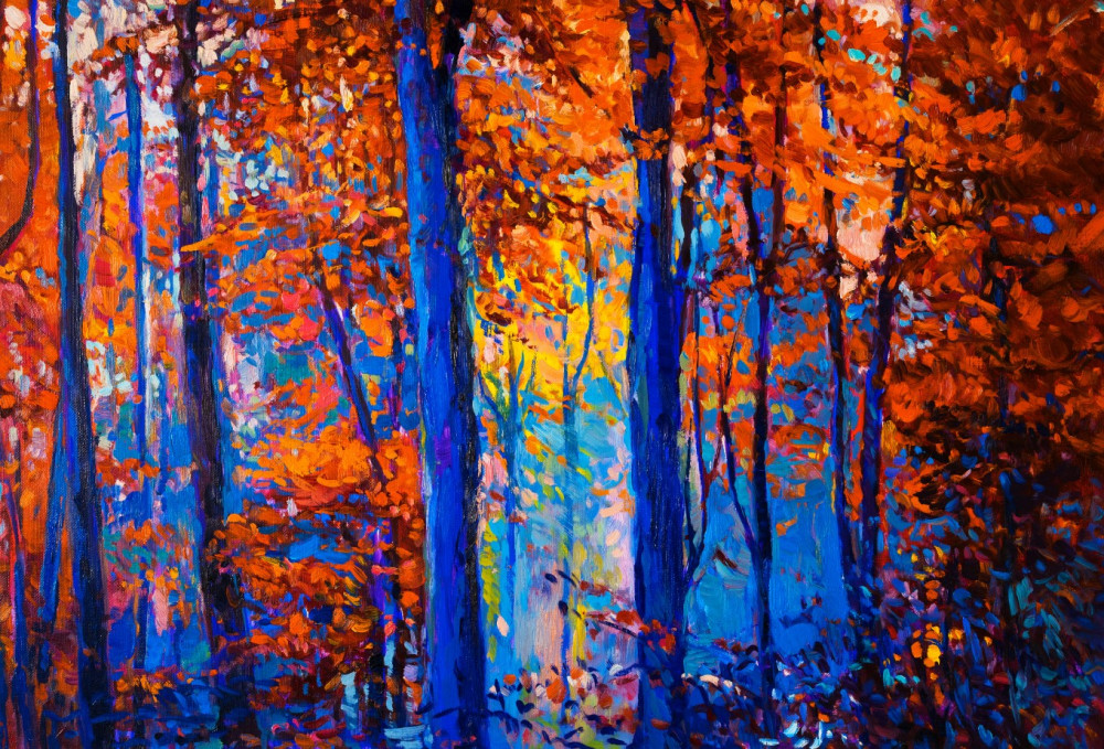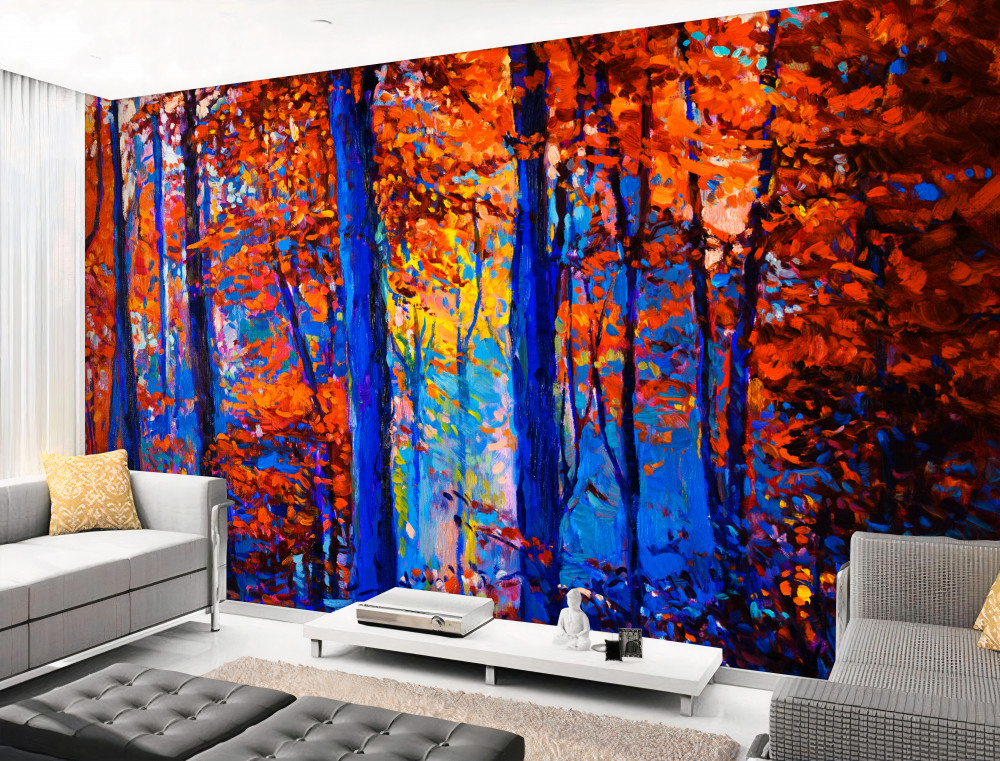 Tapeta Fototapeta kontrast jesiennych kolorów w lesie (artykuł a92241 ) z kategorii Fototapety Natura
