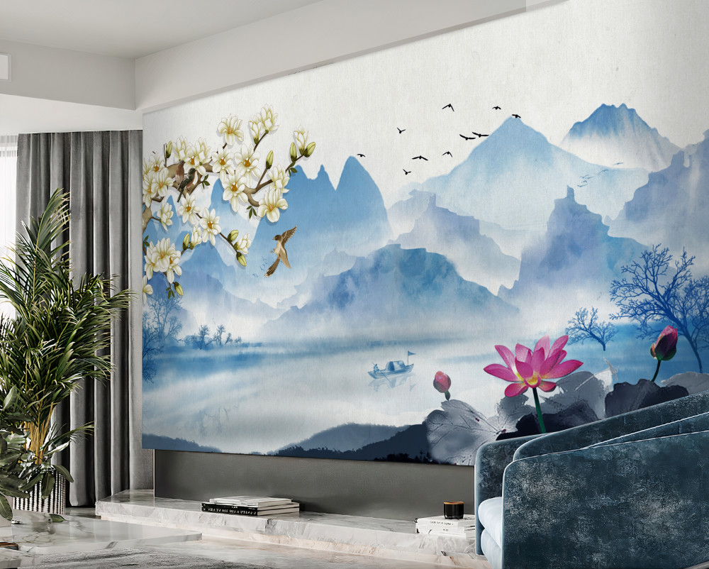 Tapeta Fototapeta Krajobrazy chińskich jezior górskich w akwareli (artykuł a91920 ) z kategorii Fototapety Natura