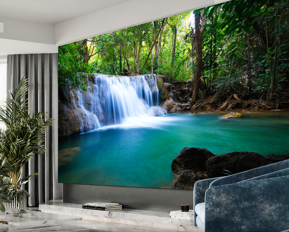 Tapeta Fototapeta krystaliczne wody leśnego wodospadu (artykuł a93066 ) z kategorii Fototapety Natura