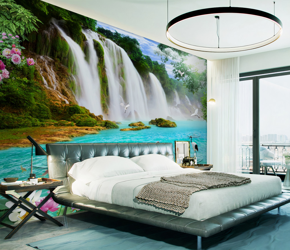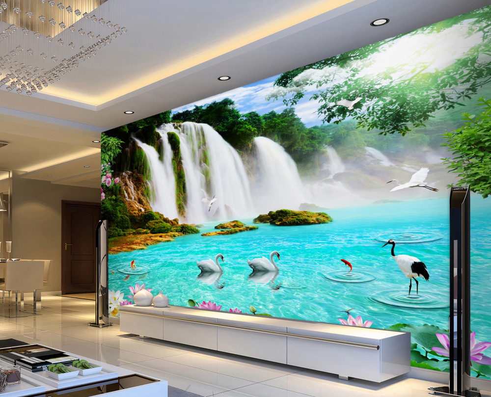 Tapeta Fototapeta krystalicznie błękitna woda z kaskadowymi łabędziami (artykuł a93119 ) z kategorii Fototapety Natura