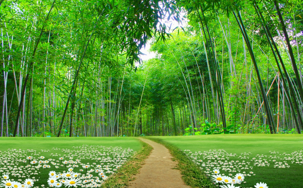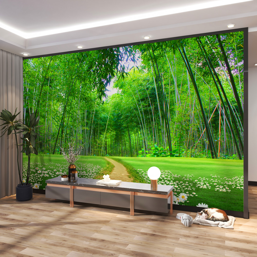 Tapeta Fototapeta łąka zamieniająca się w bambusowy ogród (artykuł a91786 ) z kategorii Fototapety Natura