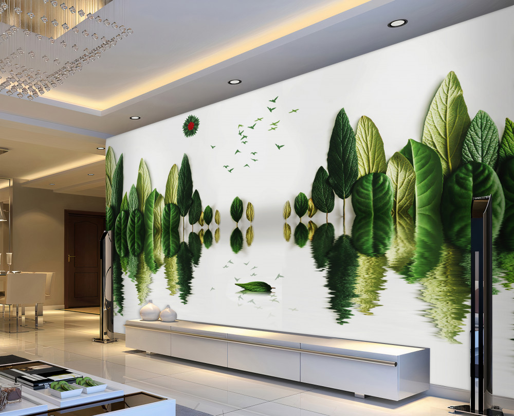 Tapeta Fototapeta las liści i jego odbicie w wodzie (artykuł a91914 ) z kategorii Fototapety Natura