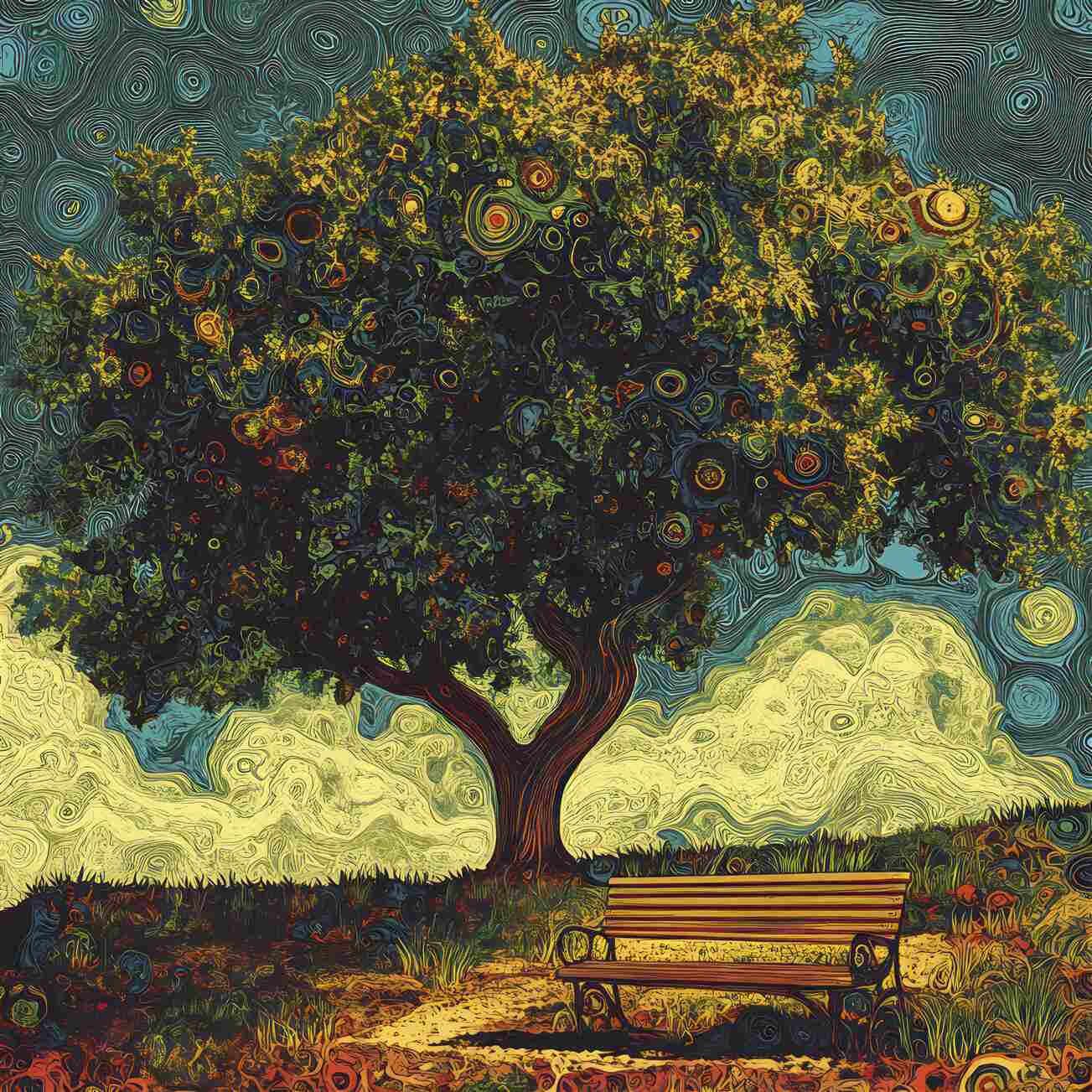 Tapeta Fototapeta Ławka pod drzewem (artykuł u14390 ) z kategorii Fototapety Natura