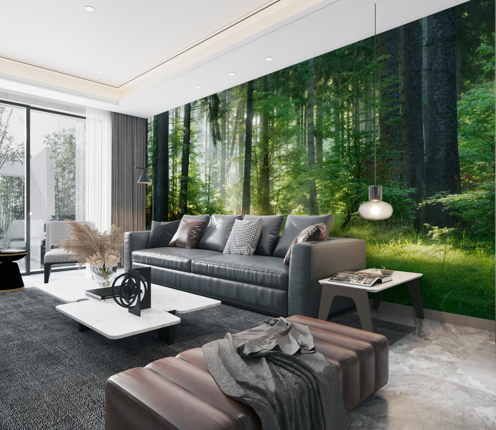 Tapeta Fototapeta leśny poranek wśród zieleni (artykuł a93344 ) z kategorii Fototapety Natura