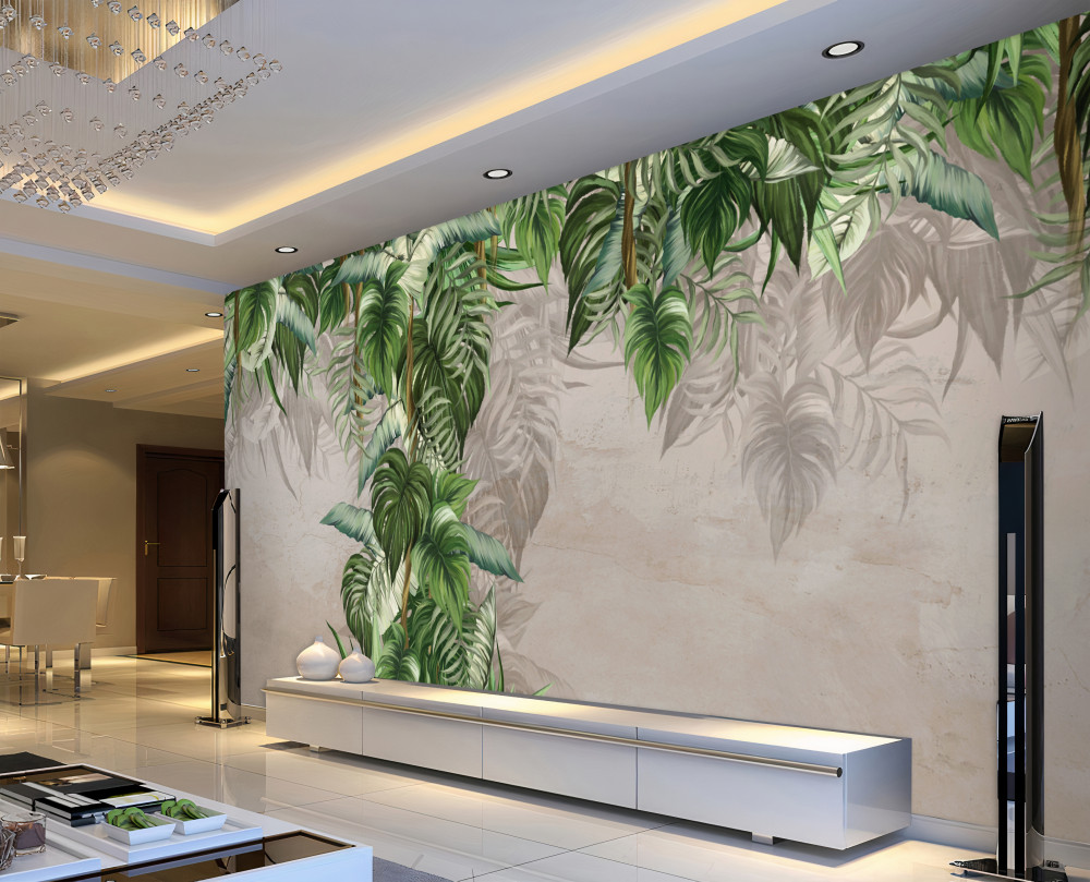 Tapeta Fototapeta liście dużej monstery rozciągają się w stronę wody (artykuł a93432 ) z kategorii Fototapety Natura