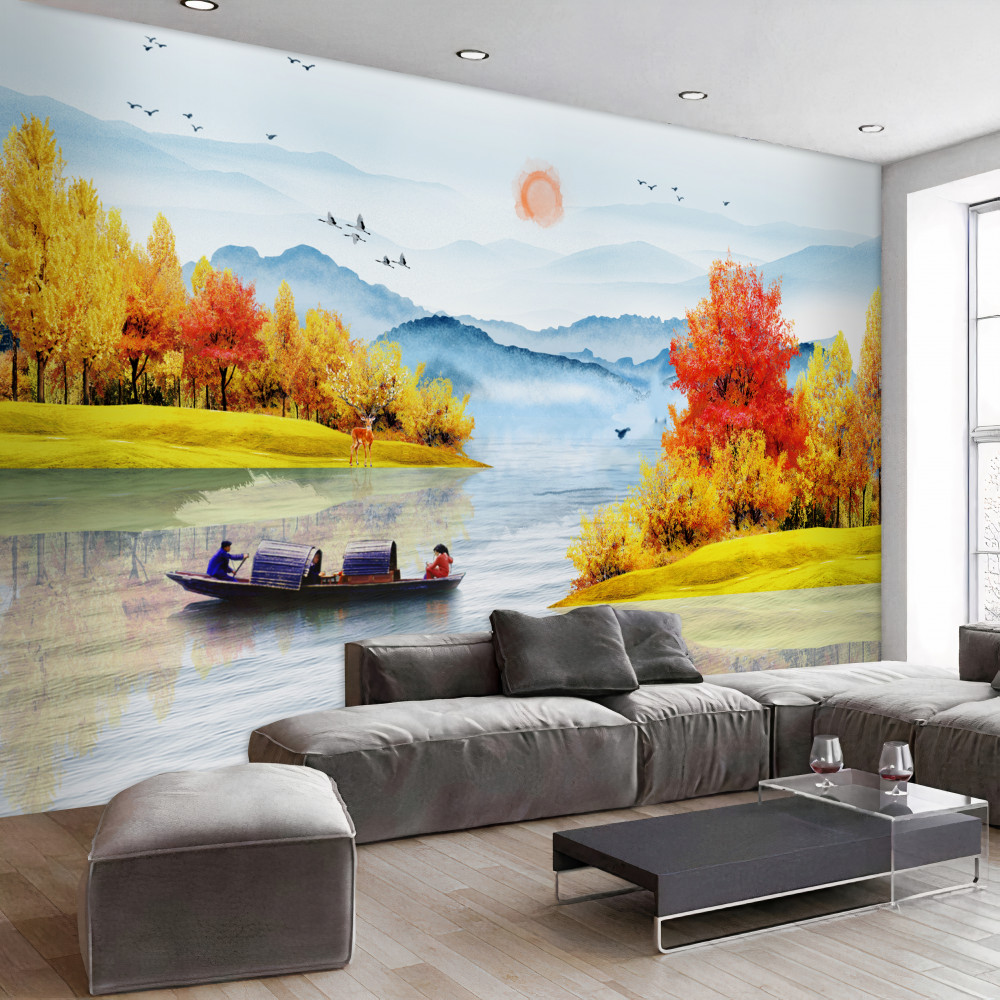 Tapeta Fototapeta łódź na rzece w górach (artykuł a91911 ) z kategorii Fototapety Natura