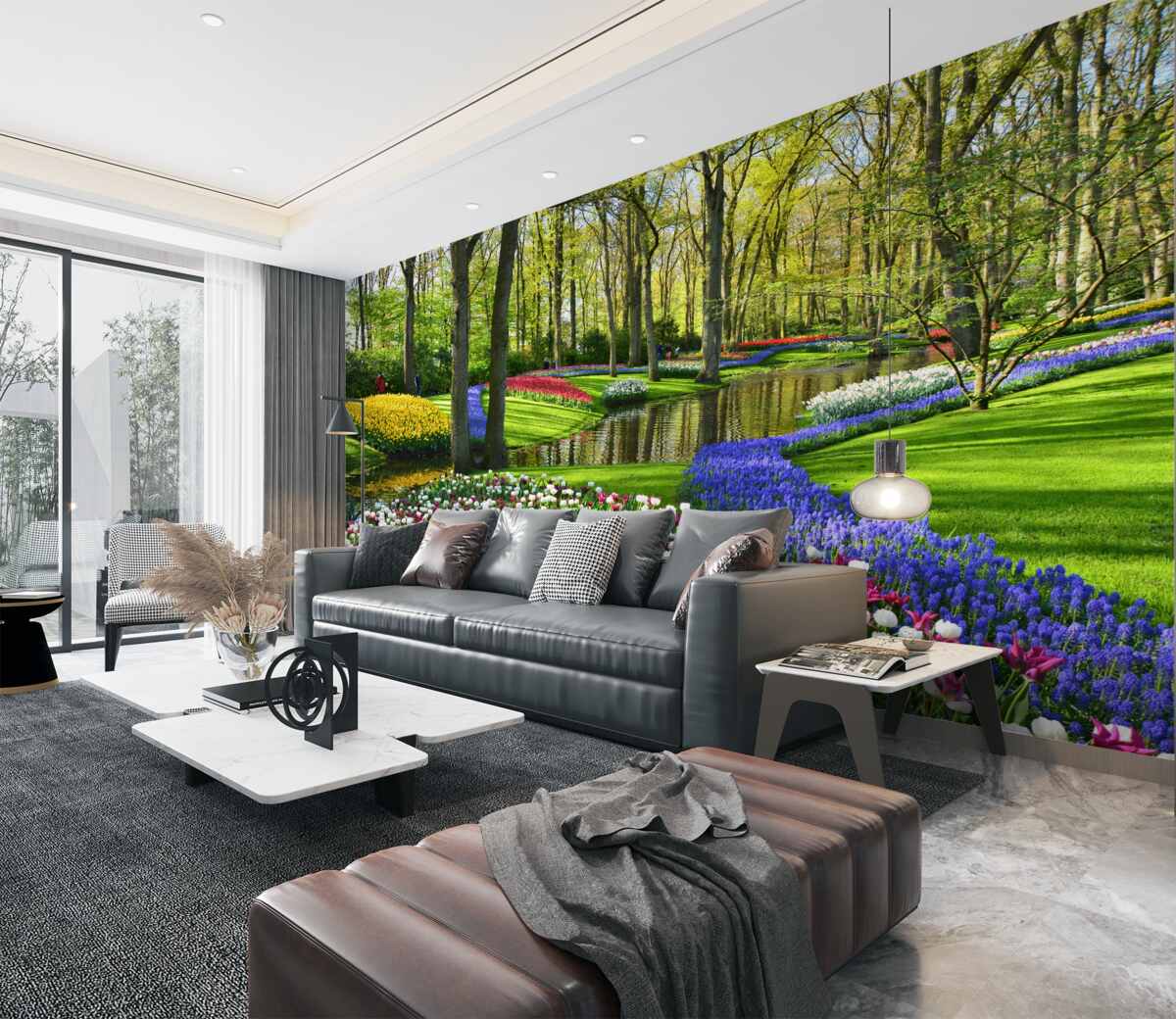 Tapeta Fototapeta Luksusowa aleja z tulipanami nad wodą (artykuł a98266 ) z kategorii Fototapety Natura