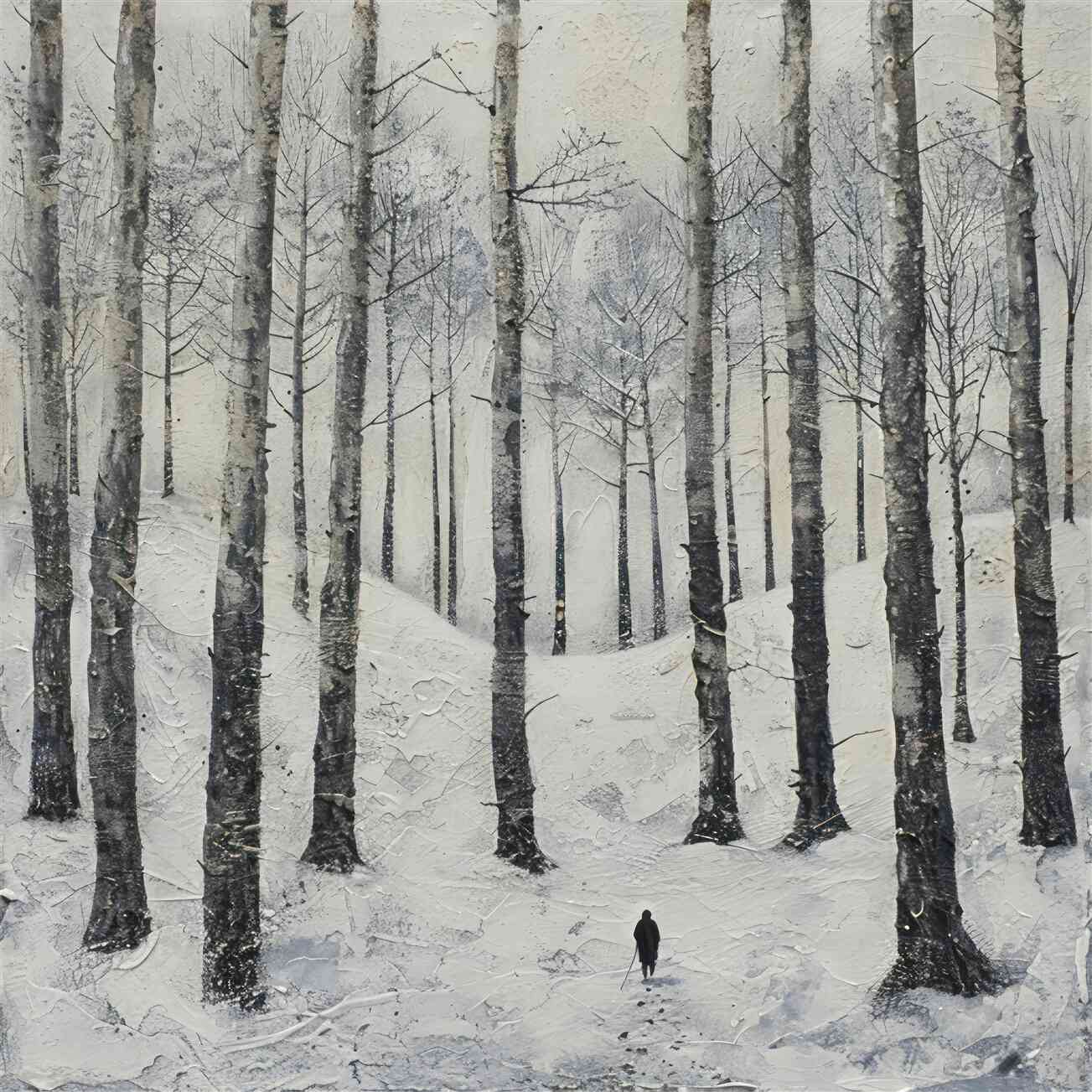 Tapeta Fototapeta Mężczyzna idzie w zimowym lesie (artykuł u14330 ) z kategorii Fototapety Natura