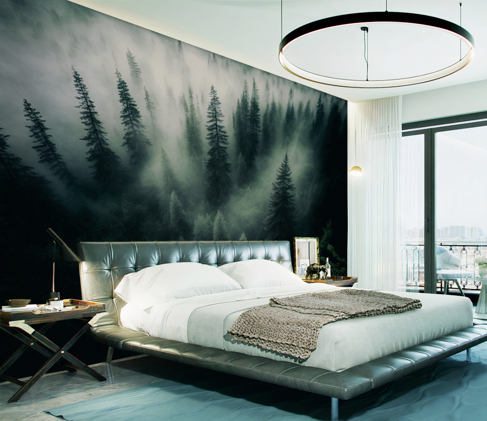 Tapeta Fototapeta mgła w nocnym lesie iglastym (artykuł a89152 ) z kategorii Fototapety Natura