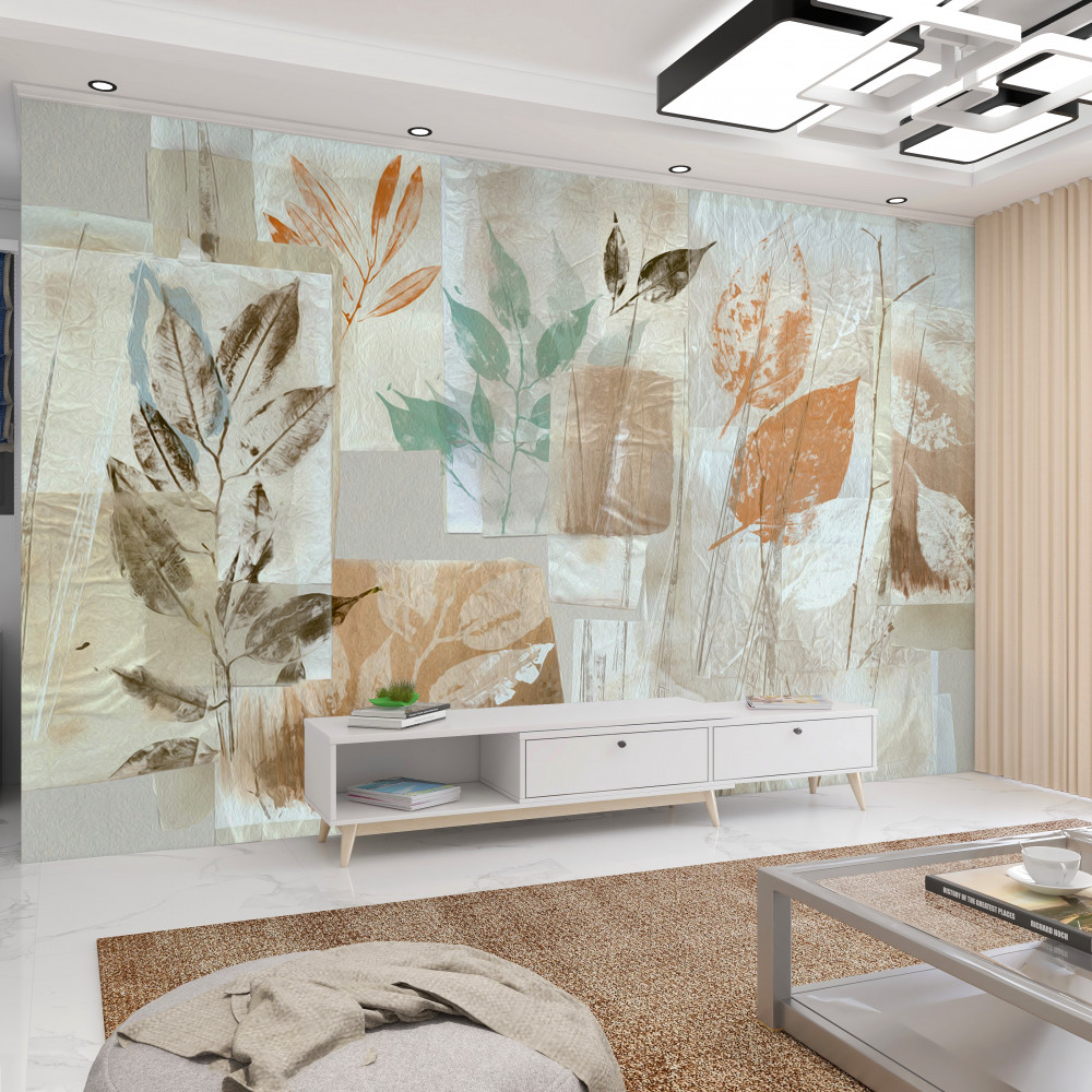 Tapeta Fototapeta nadruki kwiatów i liści za pomocą farby (artykuł a93270 ) z kategorii Fototapety Natura