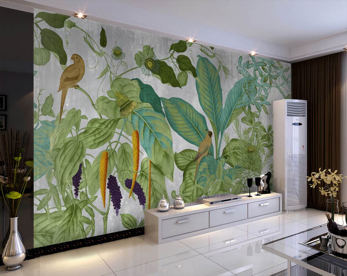 Tapeta Fototapeta Papugi wśród zielonych liści (artykuł a97882 ) z kategorii Fototapety Natura