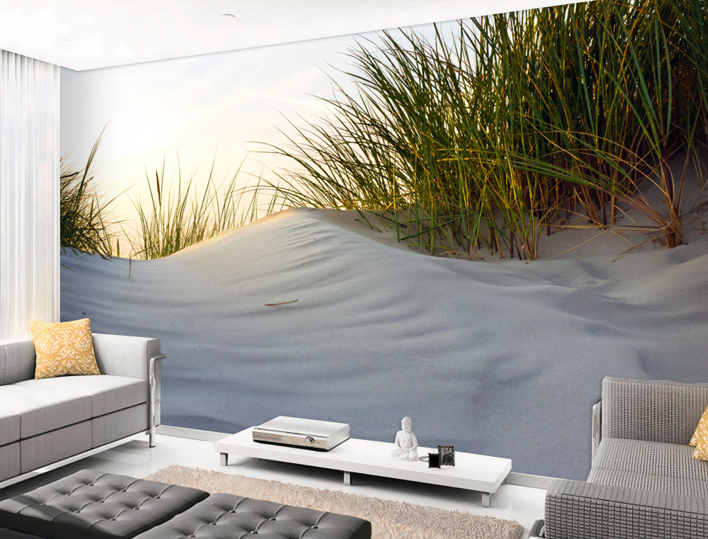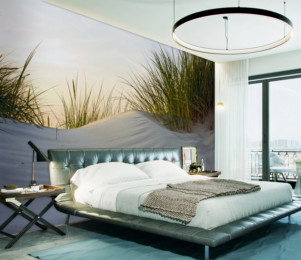 Tapeta Fototapeta piaszczysta plaża z zielenią o świcie (artykuł a92923 ) z kategorii Fototapety Natura