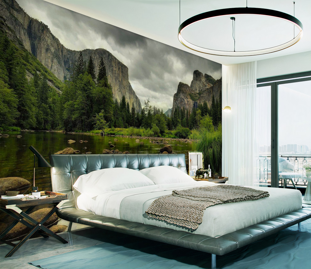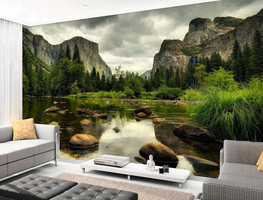 Tapeta Fototapeta pochmurny dzień nad górską rzeką (artykuł a90658 ) z kategorii Fototapety Natura