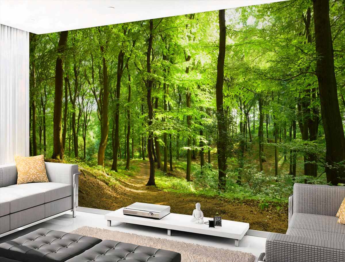 Tapeta Fototapeta polana w zielonym lesie pokrytym (artykuł a97641 ) z kategorii Fototapety Natura