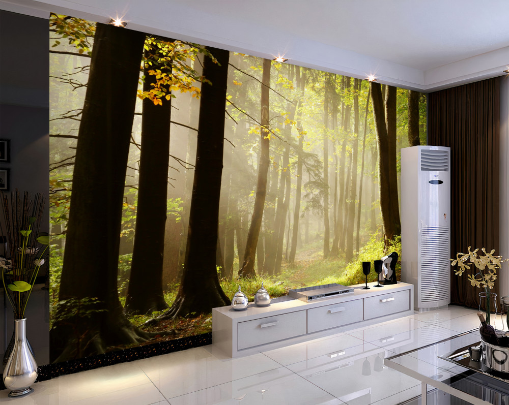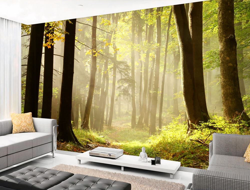 Tapeta Fototapeta promienie porannego słońca przebijają się przez leśną mgłę (artykuł a92724 ) z kategorii Fototapety Natura