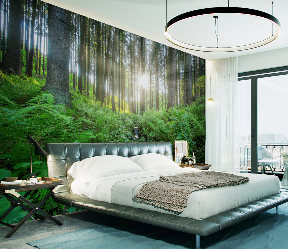Tapeta Fototapeta promienie słońca przecinają gęsty las (artykuł a93205 ) z kategorii Fototapety Natura