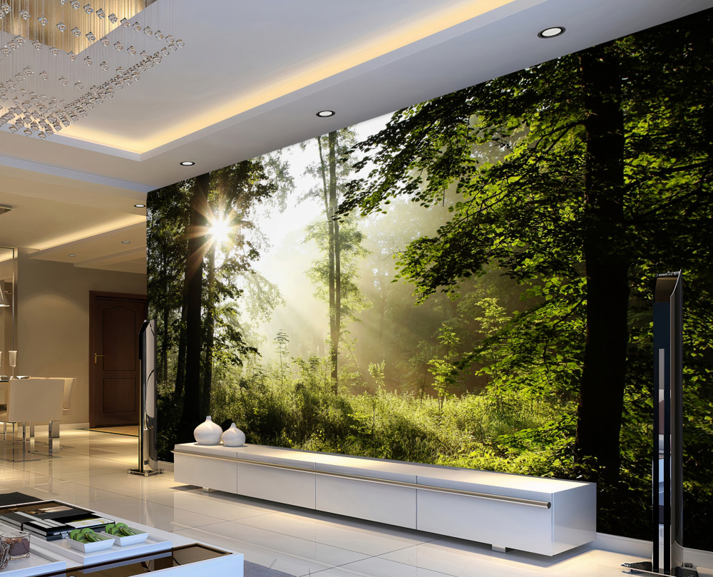 Tapeta Fototapeta promienie słoneczne ogrzewają drzewa, które ostygły przez noc (artykuł a93078 ) z kategorii Fototapety Natura