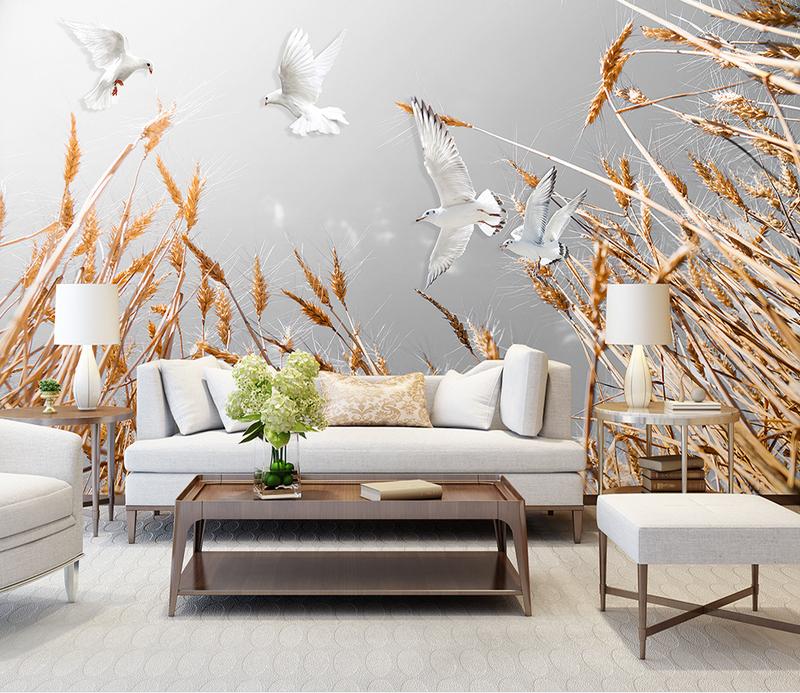 Tapeta Fototapeta pszenica białe ptaki (artykuł a622 ) z kategorii Fototapety Natura