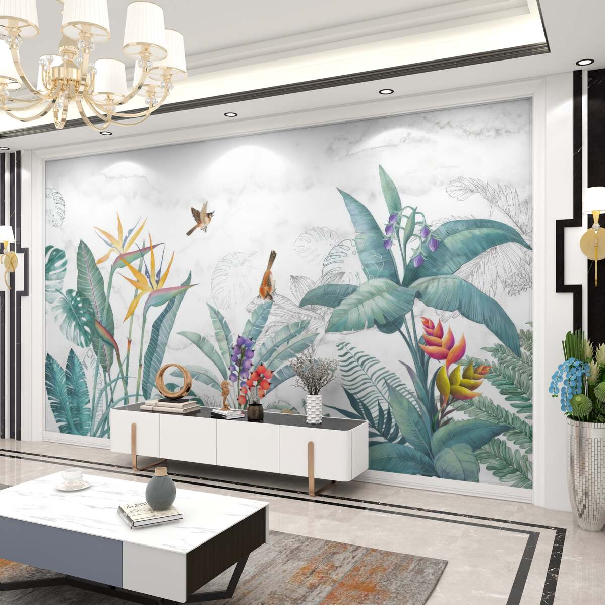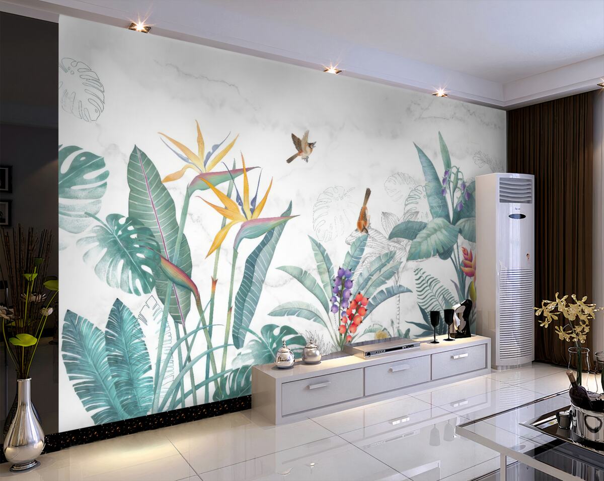 Tapeta Fototapeta Ptaki i różne liście (artykuł a97453 ) z kategorii Fototapety Natura
