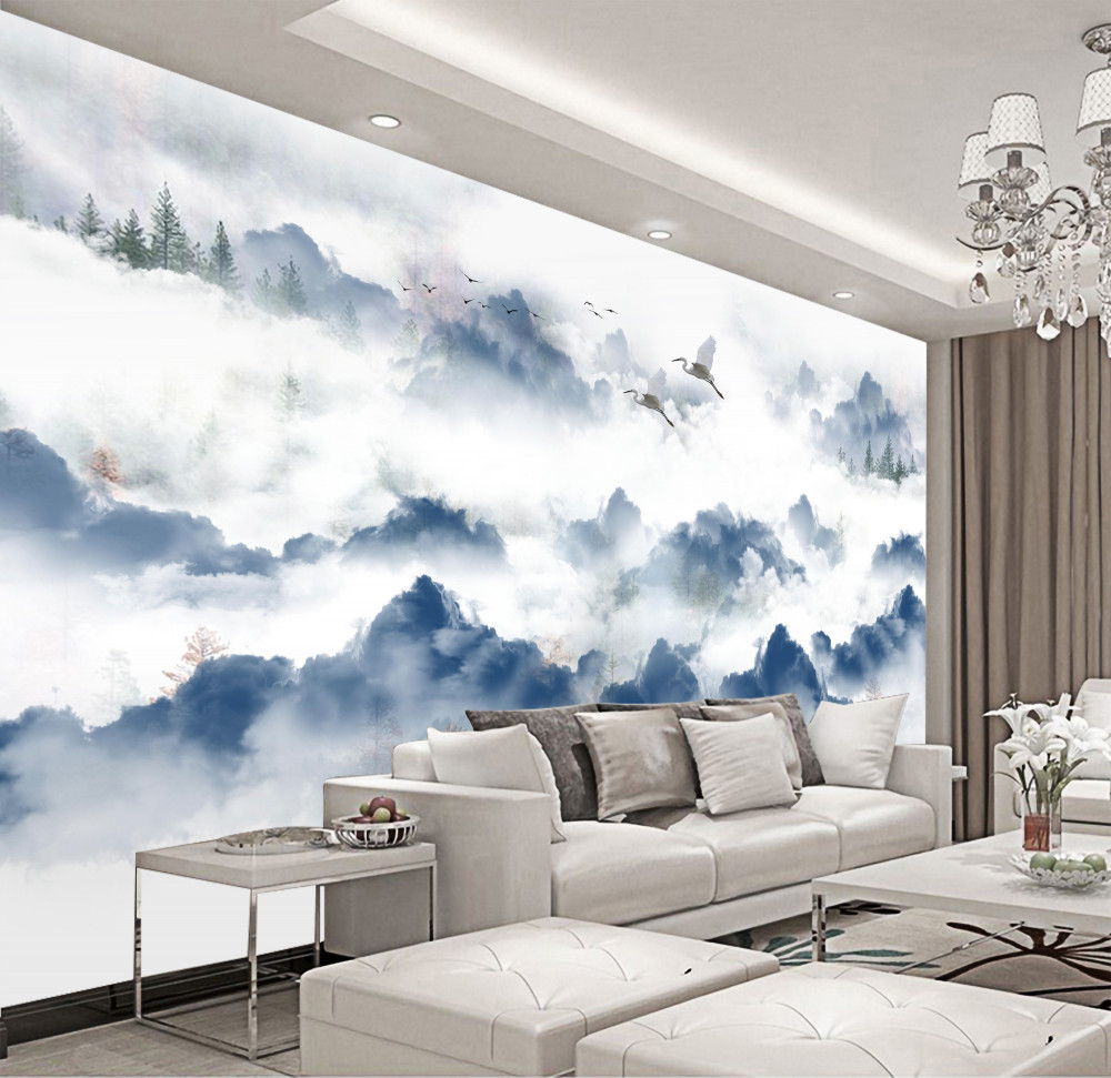 Tapeta Fototapeta ptaki latają nad zamglonymi szczytami gór (artykuł a94168 ) z kategorii Fototapety Natura