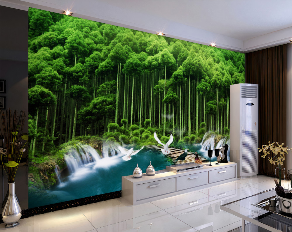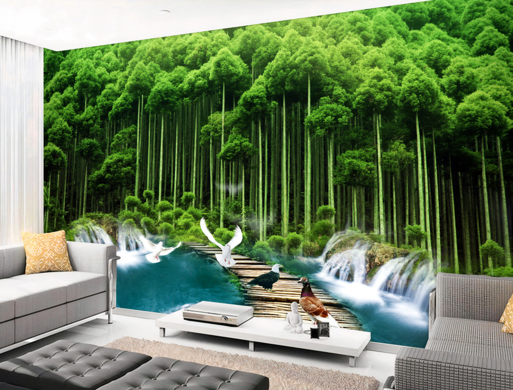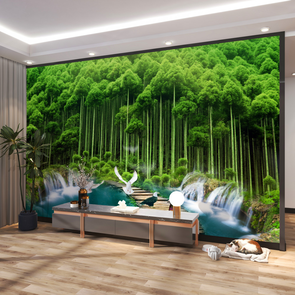 Tapeta Fototapeta ptaki przy wodopoju w zielonym lesie (artykuł a91774 ) z kategorii Fototapety Natura