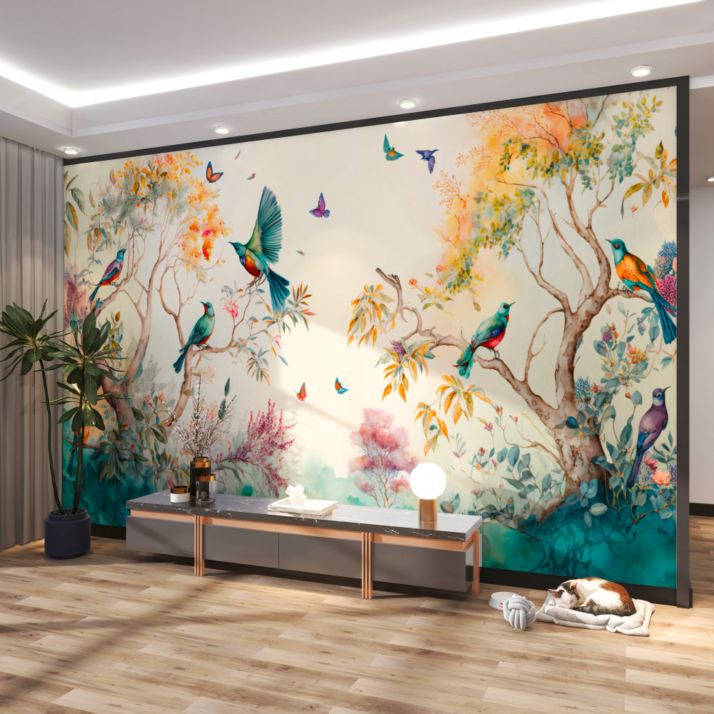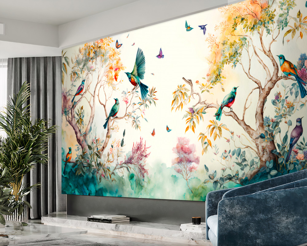 Tapeta Fototapeta raj ptaków w koronach drzew (artykuł a89228 ) z kategorii Fototapety Natura