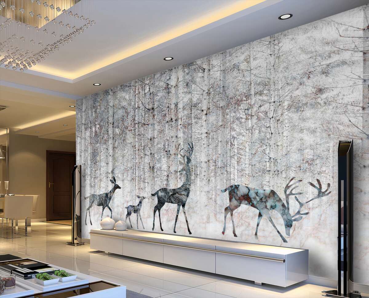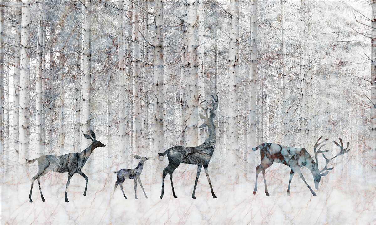 Tapeta Fototapeta Rodzina jeleni w zaśnieżonym lesie (artykuł a98956 ) z kategorii Fototapety Natura